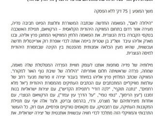 This Work comes to revive a space in Jewish classical music, the requiem. It is a passionate Requiem to the Mother. The words of Pedaya portray a journey from the dream of the mother's death to her passing, the ritual garment tearing, the tears, burial, and the rise of the soul. The voyage is colored by the tempest of the soul's ascension, the celebration (Hillula) of returning the body of light to its source.