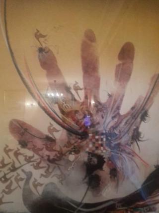 De tous ses talismans, le plus célèbre et protecteur est encore Barakat Mohamed qui accueille les hôtes à l’entrée de la ville, une manière de portail pour les bénir et pour s’en séparer, une stèle reliant la terre au ciel. Elle reproduit la pierre incrustée dans la muraille que Sidi Mohamed, on ne sait lequel, peut-être le fondateur de la ville, aurait fait venir de La Mecque. Pour protéger la cité contre les abîmes qui béent au large de l’Océan autant qu’à l’intérieur des terres, dans les consciences autant qu’au bout des mains et des pinceaux. C’est une pierre labyrinthique qui préserve de l’égarement dans ses sens, ses souvenirs, ses signes. Miloudi était habité par le Dieu aux 99 noms qu’on n’avait jamais terminé d’égrener au Msid où l’on hésitait entre le pinceau et la plume de roseau pour calligraphier son âme. Ses années à Casablanca et à Paris l’inciteront encore plus à se retirer derrière le haïk d’Essaouira et à le colorier de ses incantations.